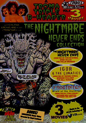 Troma Triple B-Header: Vol. 4: The Nightmare Never Ends Collection (1980) is a trio of horror films featuring unique and bizarre tales of terror, blending dark humor with shocking and gruesome themes. Each story presents a nightmarish journey filled with unexpected twists and grotesque encounters that epitomize Troma's cult classic style.